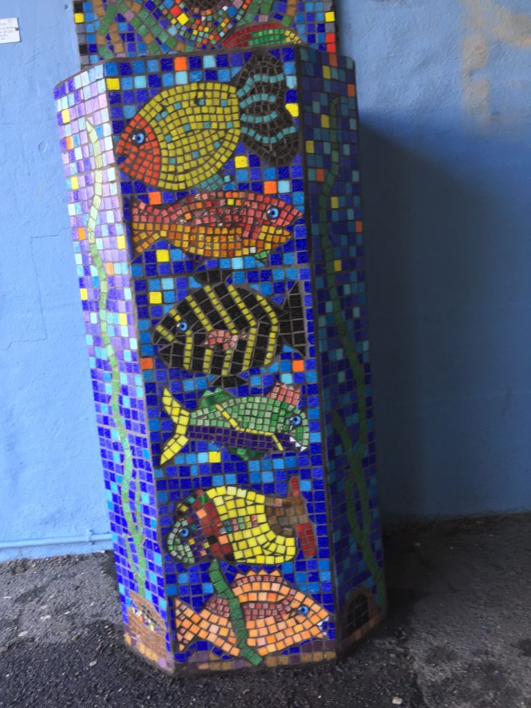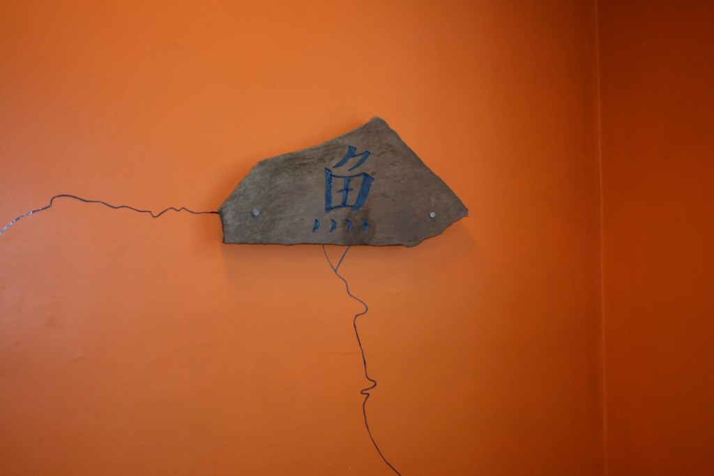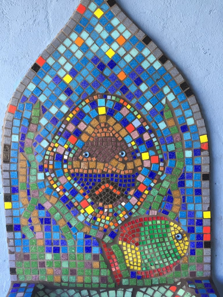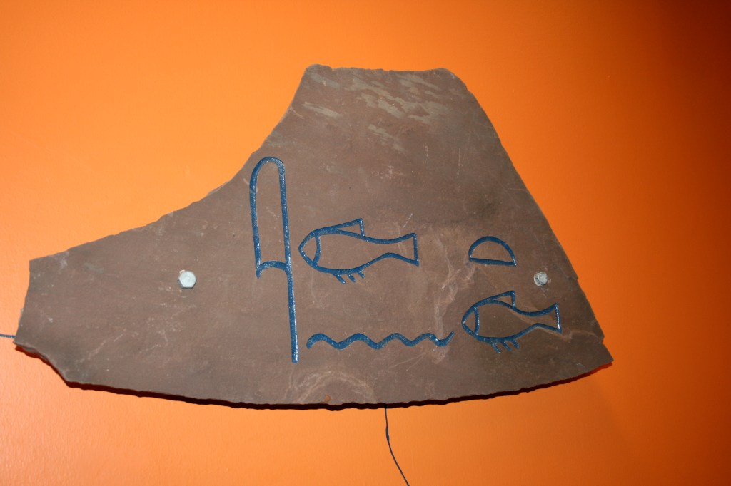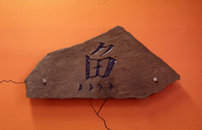 - Fisk i sten utsmykning på Gamlebyen skole